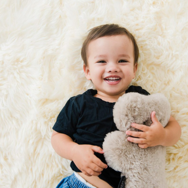 クタッとした感触がたまらない、オーストラリア・シープスキン100%のハンドメイドのクマちゃん、フラットアウトベア